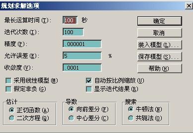 目标单元格为残差平方和Q,最优解为残差平方和最小。可变单元格就是a,b,c,n初始值所在单元格。 5 点击选项(Q),选择自动缩放比例